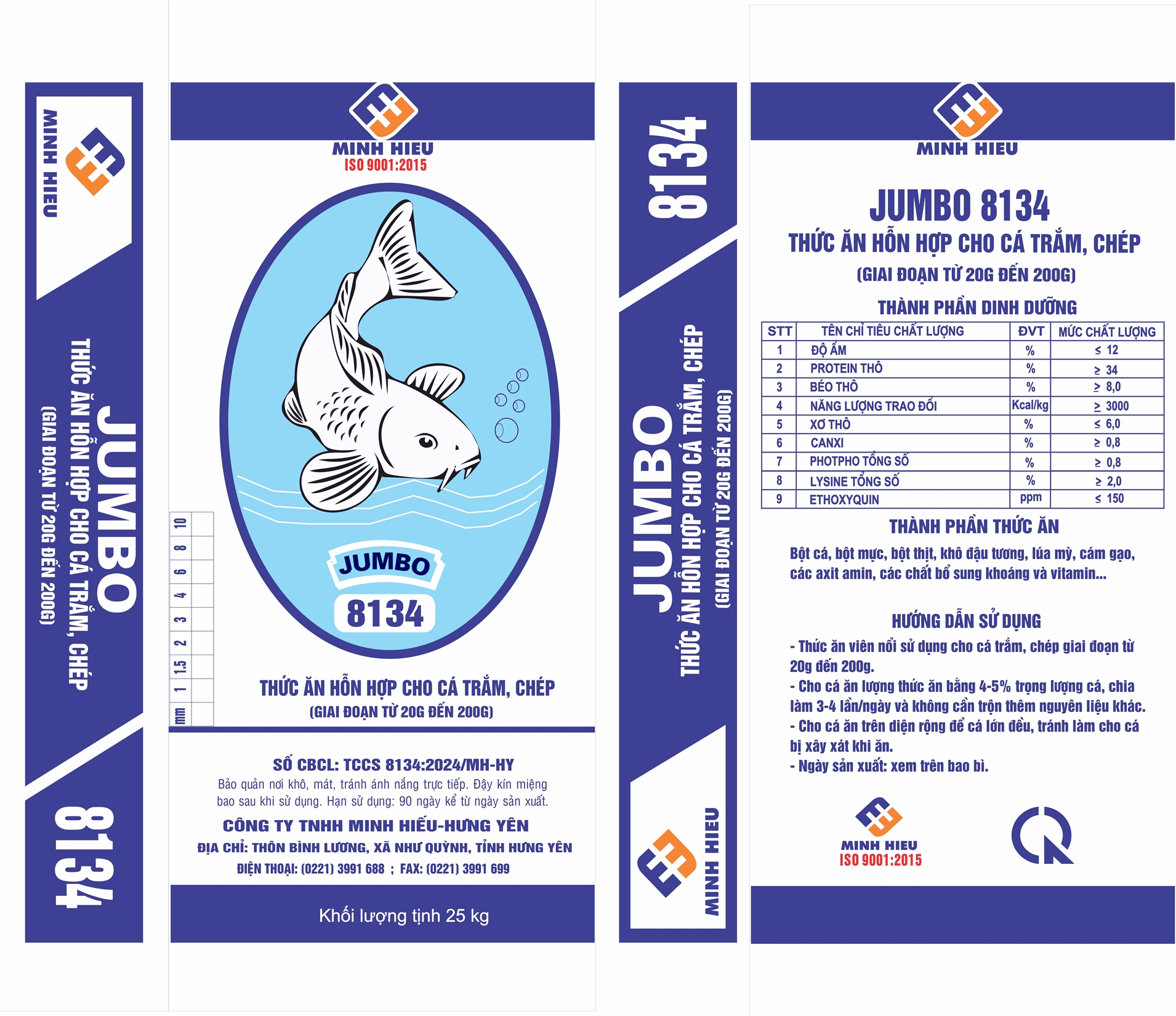 Thức ăn hỗn hợp cho cá trắm, chép giai đoạn 20g đến 200g