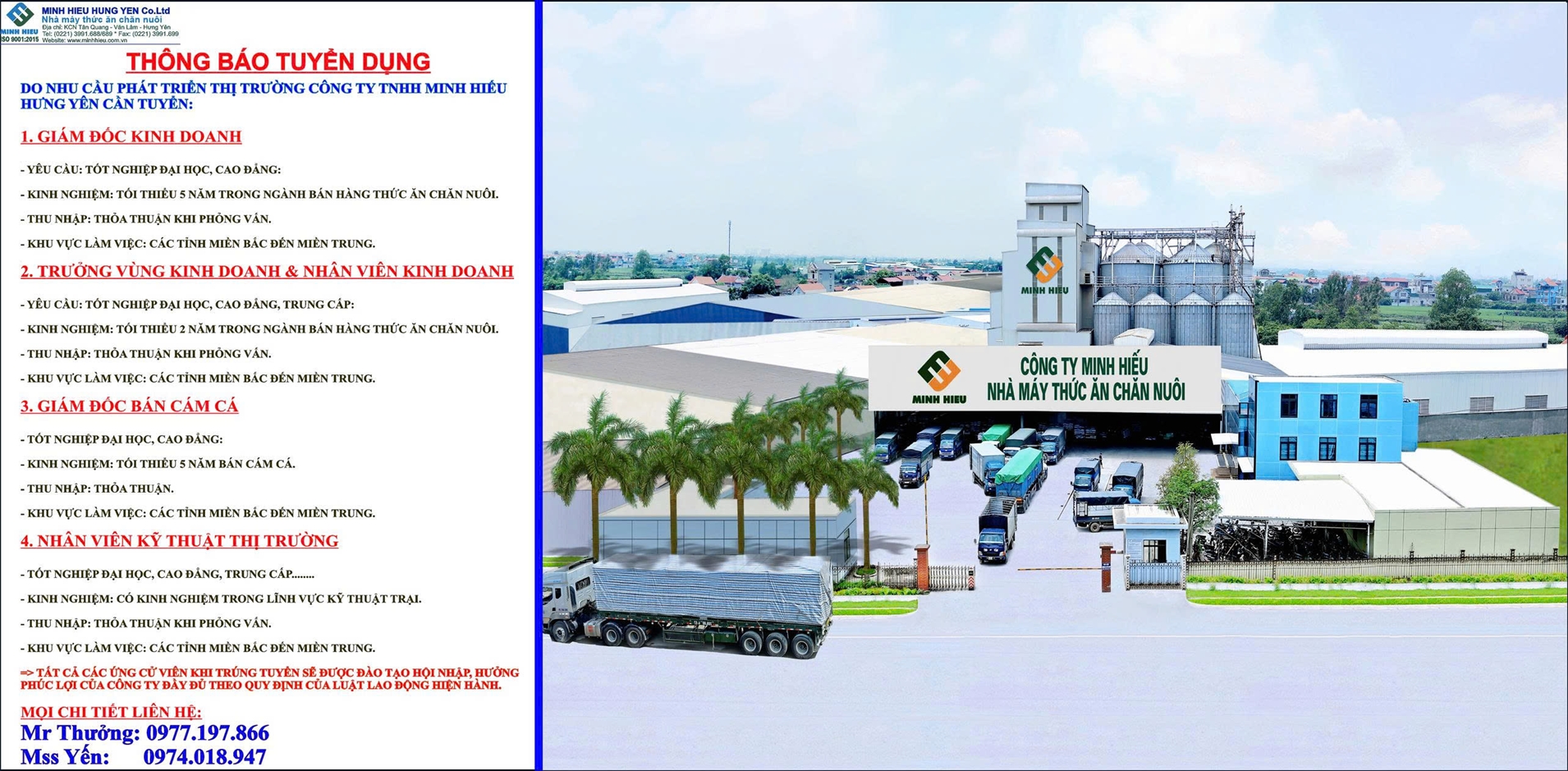 Do nhu cầu phát triển mở rộng sản xuất kinh doanh hiện nay nên Nhà Máy Thức Ăn Chăn Nuôi Minh Hiếu cần tuyển dụng nhân sự phòng kinh doanh cụ thể như sau: